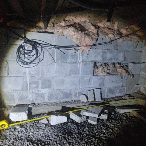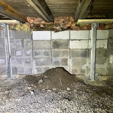 In Everett, ON, a homeowner faced a serious issue: a crawl space wall was displaced, showing an unsettling sag of 3 inches inward. The support visible on the wall's block structure seemed insufficient. With limited access and concerns about stability, the homeowner reached out to us at Basement Systems Toronto. Our expert team installed the SmartJack® and PowerBrace™ systems to address the problem. The SmartJack® system stabilized and lifted the floors towards their original elevation, while the PowerBrace™ prevented further inward movement of the foundation wall, creating a lasting solution.
